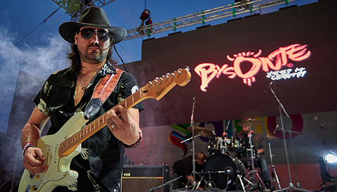 Ritmo y fuego en sus dedos. Su guitarra aporta dinamismo y fuerza, entrelazándose con precisión y pasión. Parte clave del sonido Bysonte.